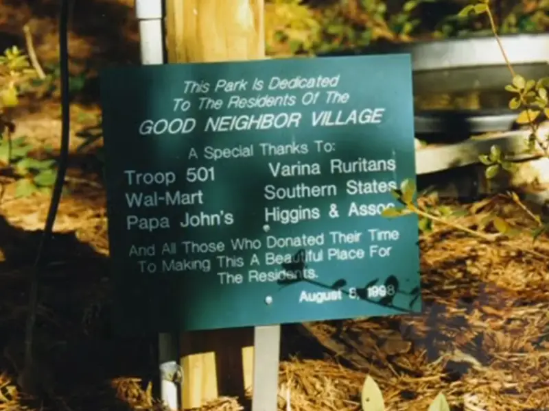The very first donation to Good Neighbor Village was the Sandra Thompson Cottage. While Good Neighbor Village provided the materials, the Richmond Homebuilders Association brought in volunteers on a Thursday, and by that Sunday evening, an entire house had been built. The structure was turn-key and included carpets, power, plumbing and landscaping.